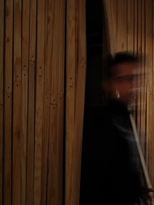 L'atelier est en travaux depuis quelques temps, c'est l'occasion d'expérimenter certaines idées comme ce mur en mouvement composé de lames de bois et de zip.